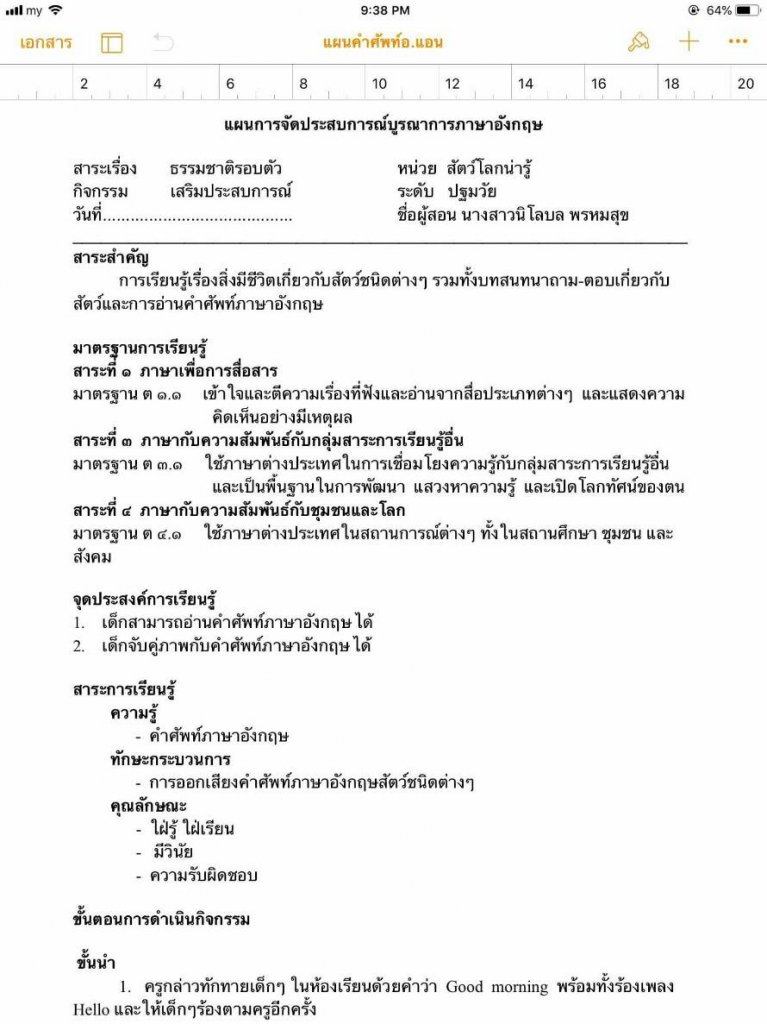 แผนการจัดประสบการณ์