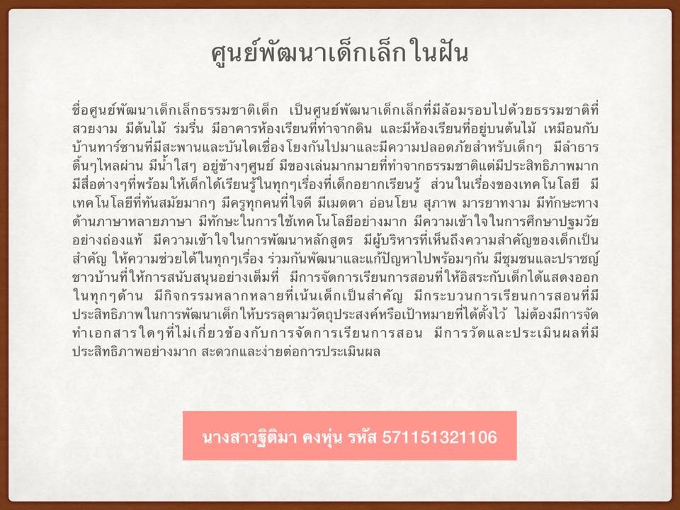 เขียนบรรยายศูนย์เด็กเล็กในฝัน(งานเดี่ยว)