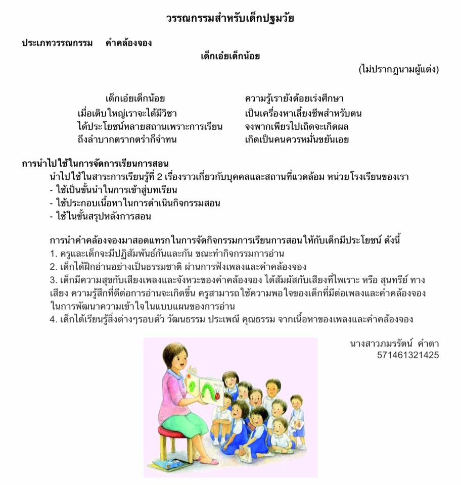 วรรณกรรมกับการประยุกต์ ใช้กับเด็กปฐมวัย