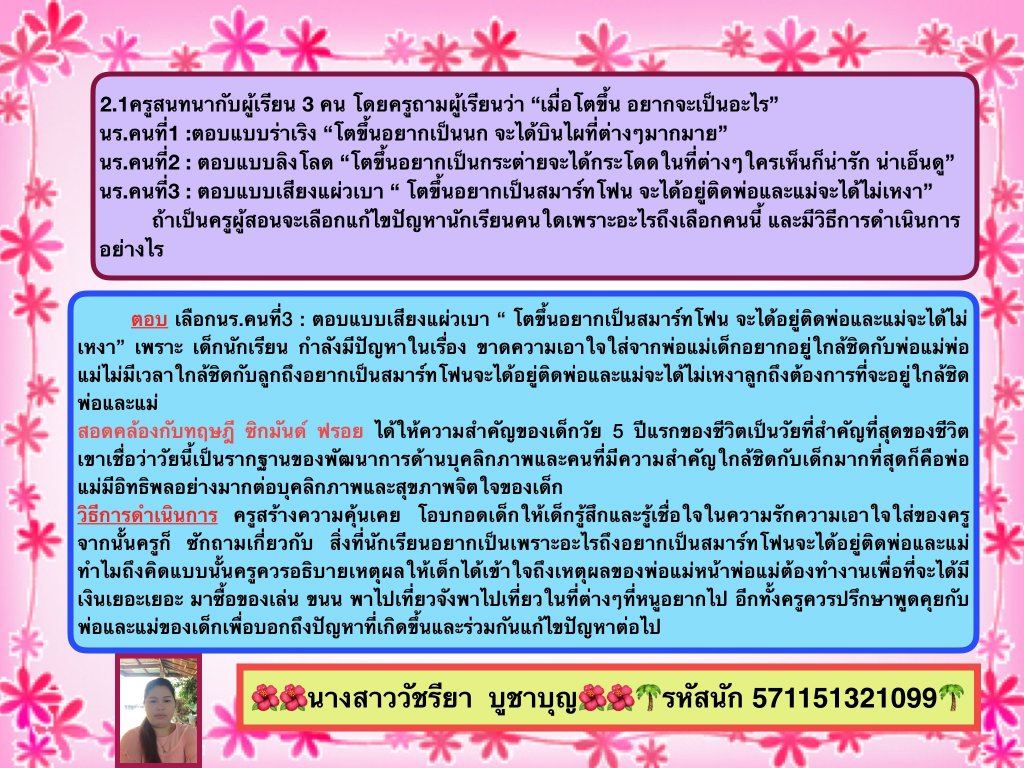 สัปห์ที่ 7 งานเดี่ยว เลือกปัญหาของเด็ใช้จิตวิทยาและประสบการณ์แก้ไข