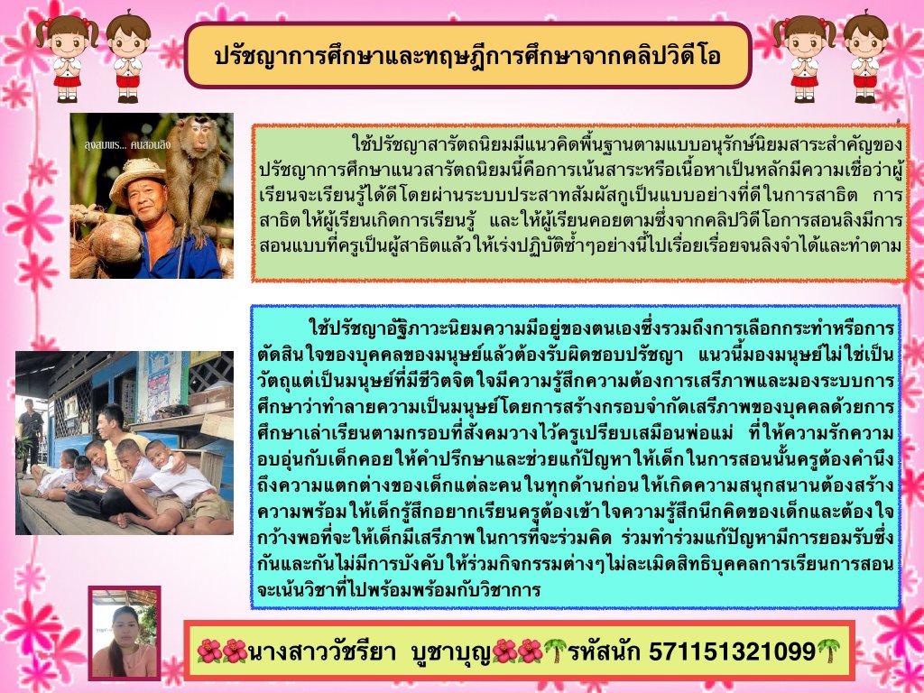งานเดี่ยว ศึกษา วีดีโอ ครูสมพรสอนลิงครูเรือนแพตอบคำถามใช้ปรัชญา