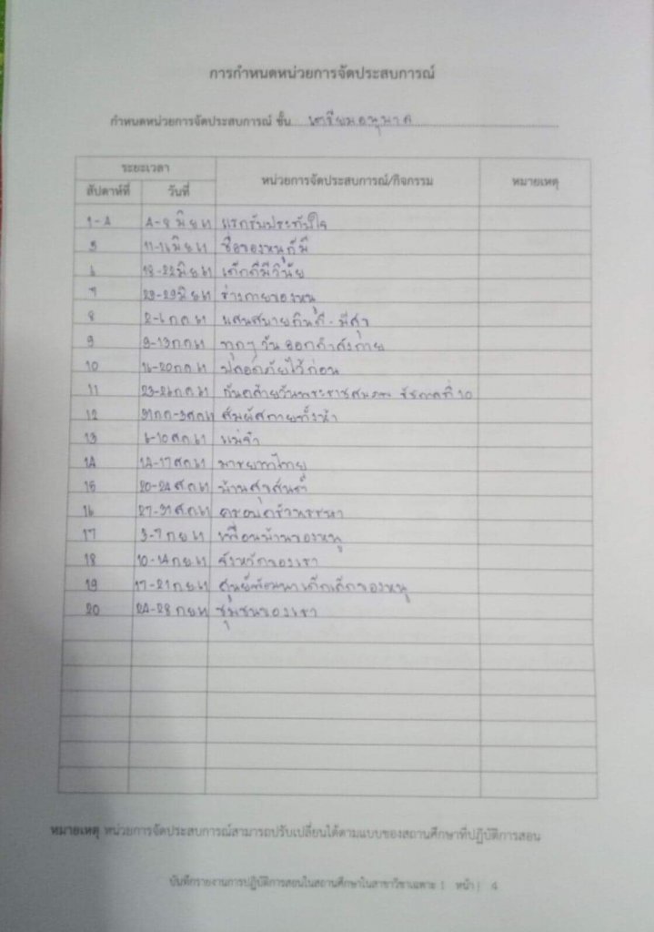 โครงสร้างหน่วยการเรียนตลอดภาคเรียน