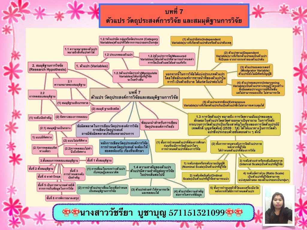 สัปดาห์ที่ 3 บทที่ 7 ตัวแปร วัตถุประสงค์การวิจัย และสมมุติฐานการวิจัย