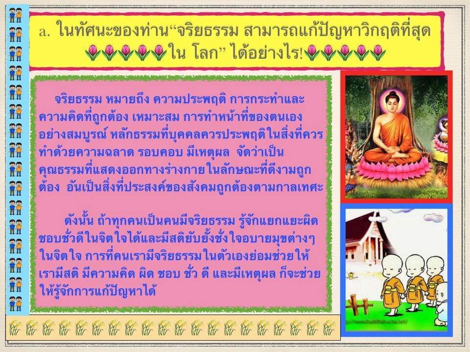 สัปดาห์ที่ 1 a ในทัศนะของท่าน “จริยธรรมสามารถ แก่ปัญหาวิกฤติที่สุดในโลก” ได้อย่างไร