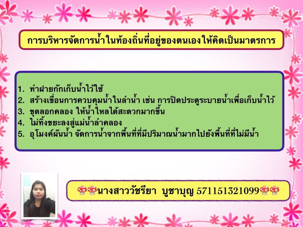 สัปดาห์ที่ 6 การบริหารจัดการน้ำในท้องถิ่นของตนเองให้คิดเป็นมาตรการ
