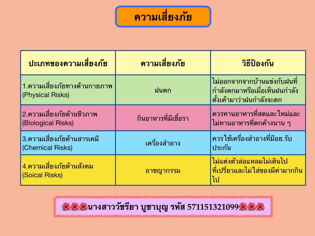 สัปดาห์ที่ 10 งานเดี่ยว ประเภทความเสี่ยง