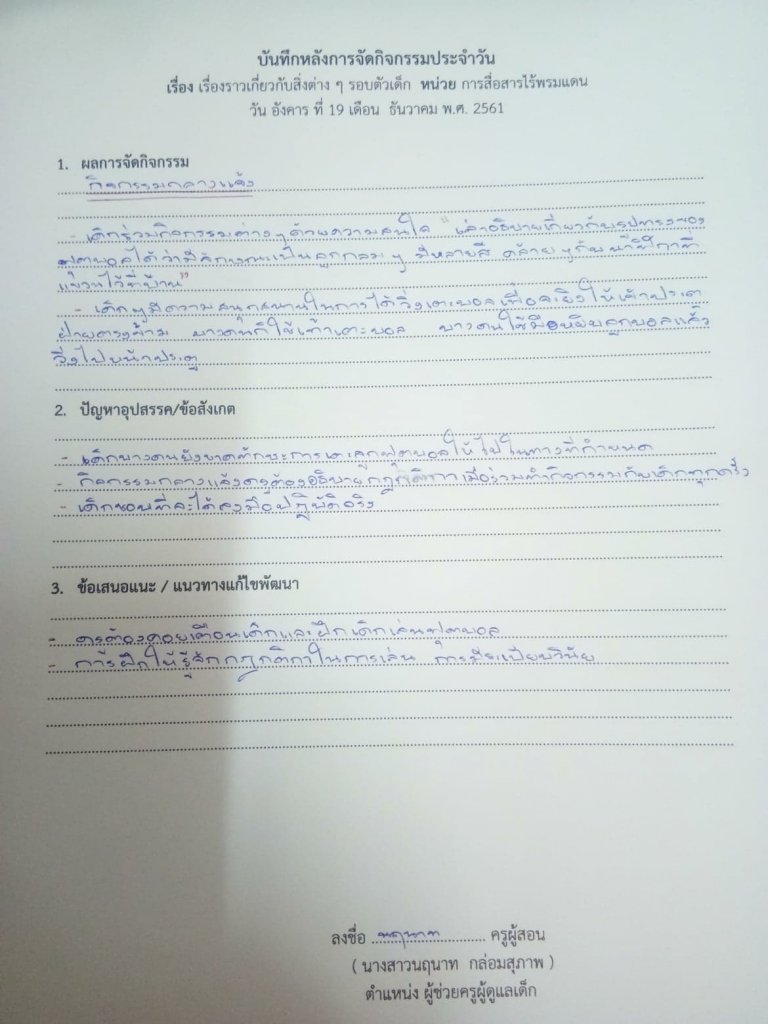 บันทึกหลังการสอน