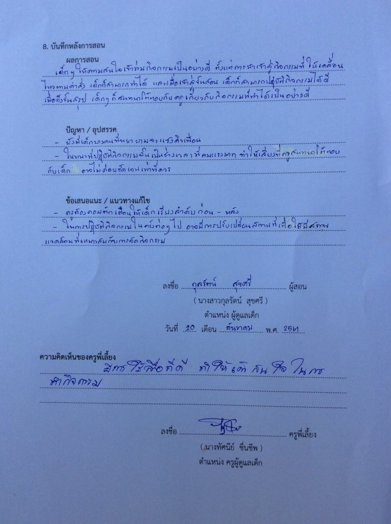 ภาพบันทึกหลังการสอน กิจกรรมกลางแจ้ง หน่วยกลางวันกลางคืน