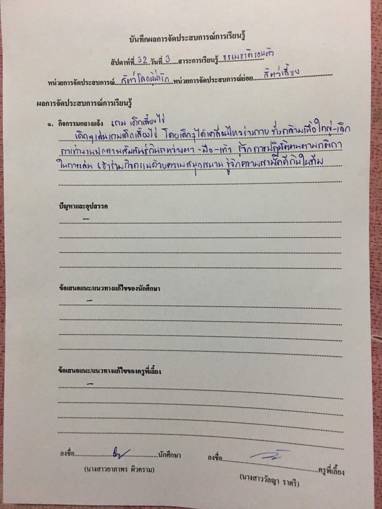บันทึกหลังการจัดประสบการณ์การเรียนรู้ หน่วย สัตว์โลกผู้น่ารัก