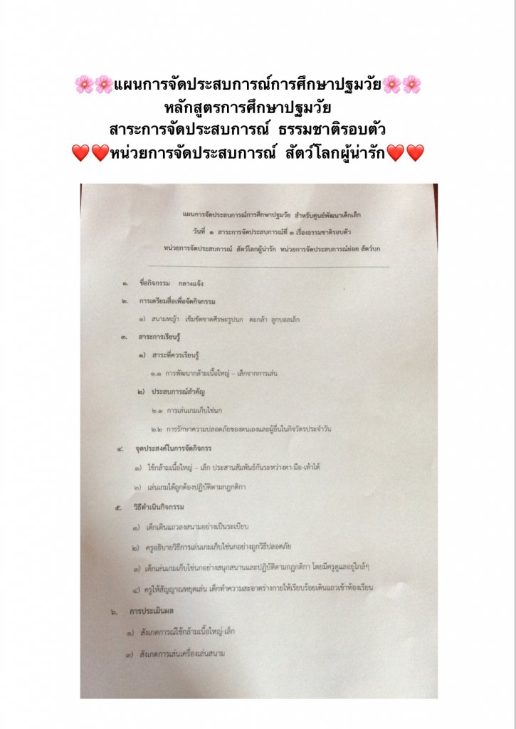แผนการจัดประสบการณ์ หน่วยสัตว์โลกผู้น่ารัก