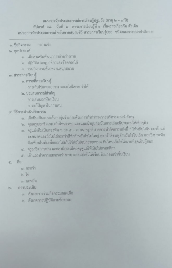 แผนการสอนกิจกรรมกลางแจ้ง หน่วยขยับกายสบายฃีวิ