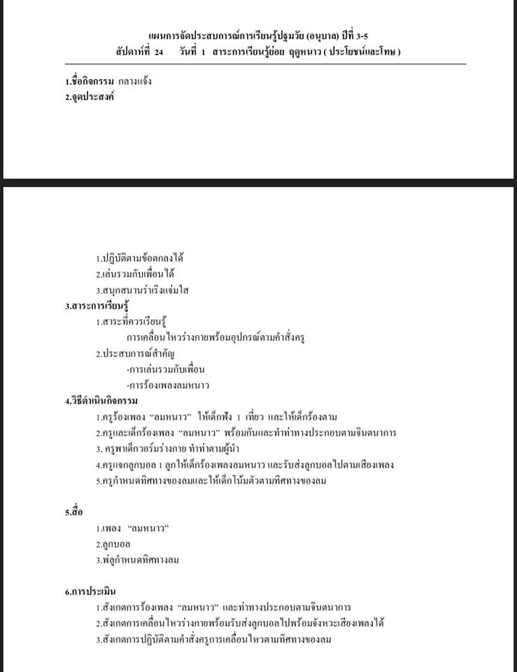 แผนการจัดประสบการณ์