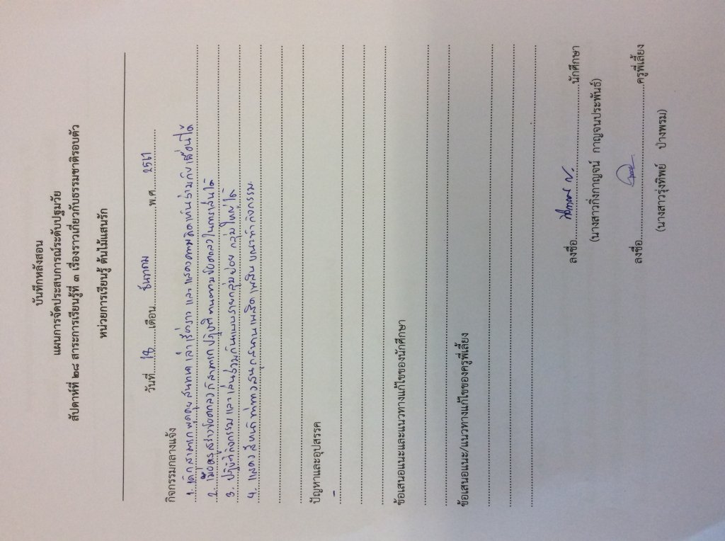 บันทึกหลังสอนหน่วยต้นไม้แสนรัก