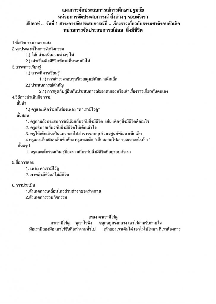 แผนการจัดประสบการณ์