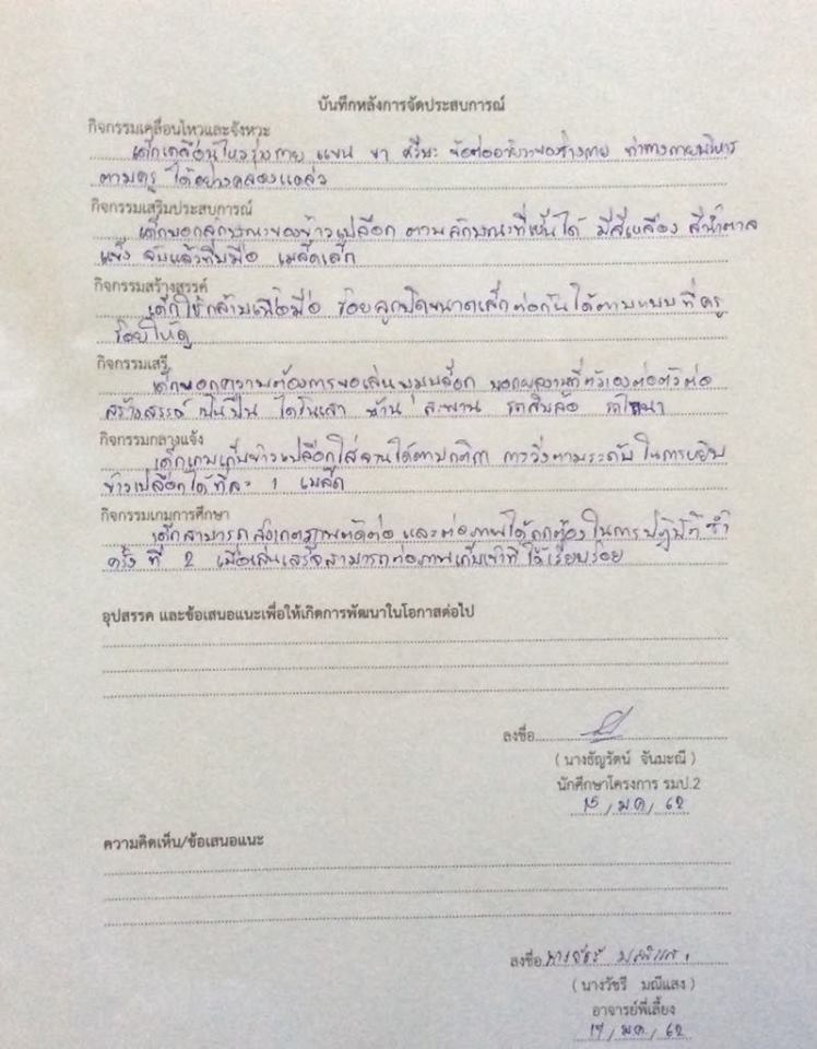 บันทึกหลังการจัดประสบกาณ์