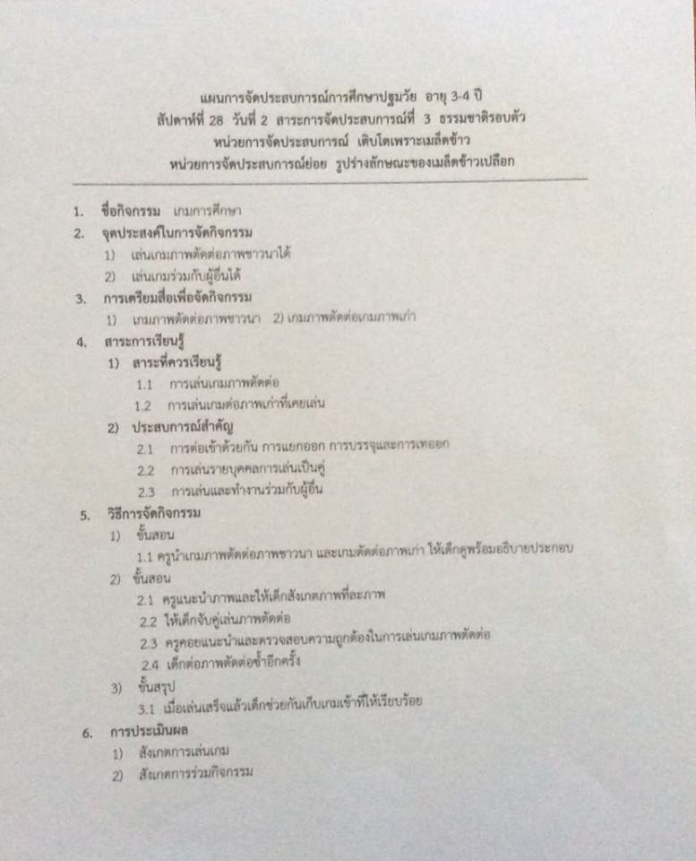 แผนการจัดประสบการณ์ หน่วยเติบโตเพราะเมล็ดข้าว
