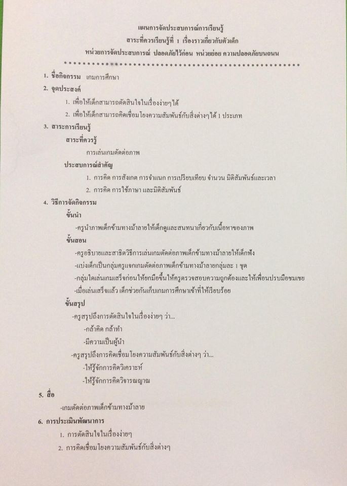 แผนการจัดประสบการณ์