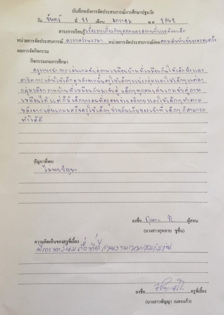 บันทึกหลังการสอน หน่วยการจัดประสบการณ์ ครอบครัวหรรษา กิจกรรมเกมการศึกษา