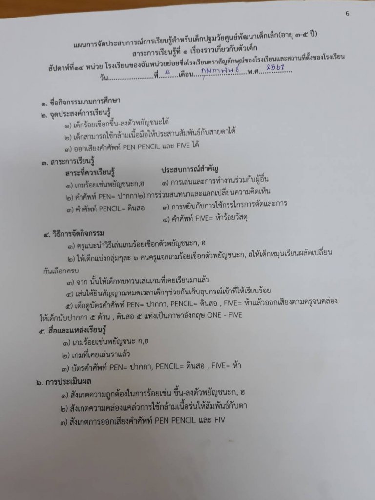 แผนการจัดประสบการณ์
