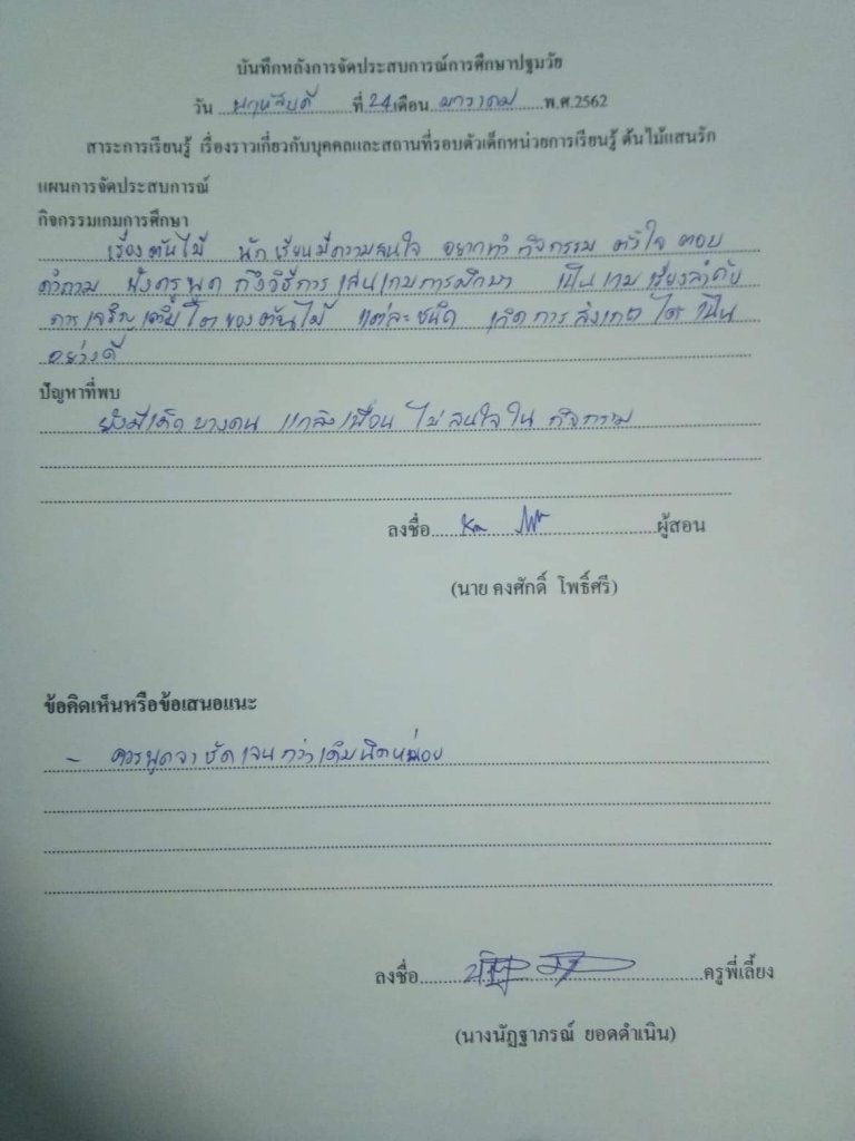 บันทึกผลหลังการจัดประสบการณ์