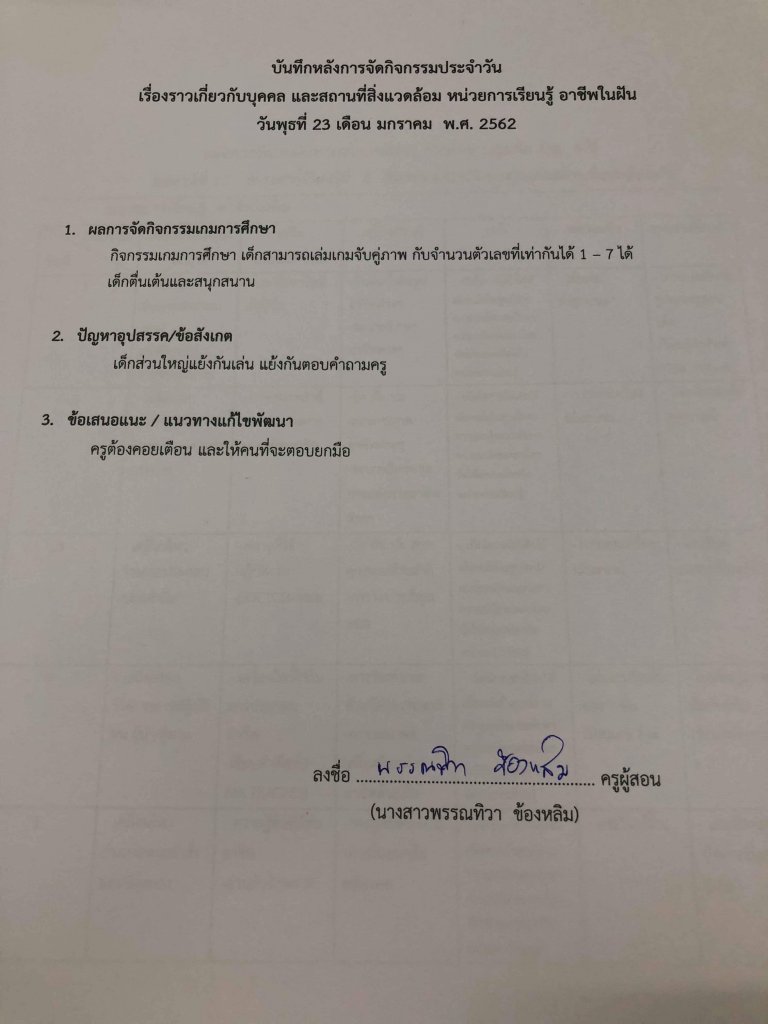บันทึกหลังสอน
