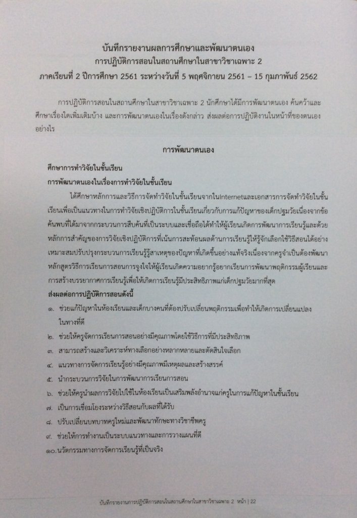 บันทึกรายงานผลการศึกษาและพัฒนาตนเอง