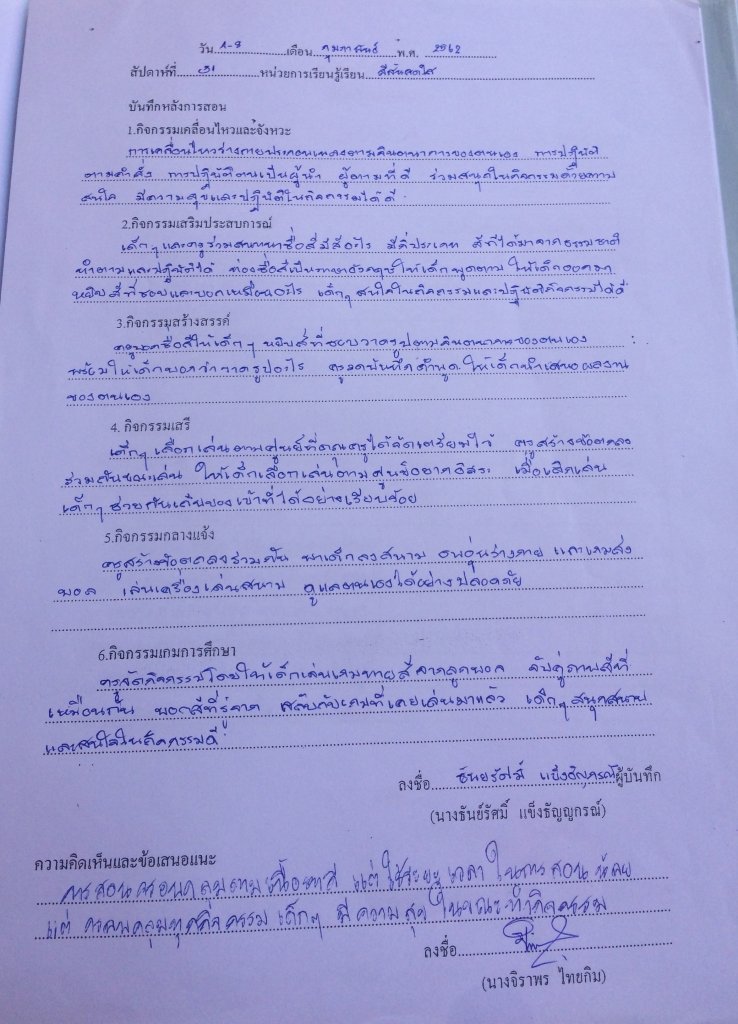 บันทึกหลังการจัดประสบการณ์