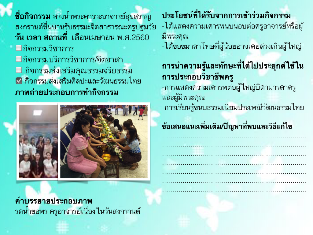 กิจกรรมส่งเสริมศิลปะและวัฒนธรรมไทยสรงน้ำพระคารวะอาจารย์