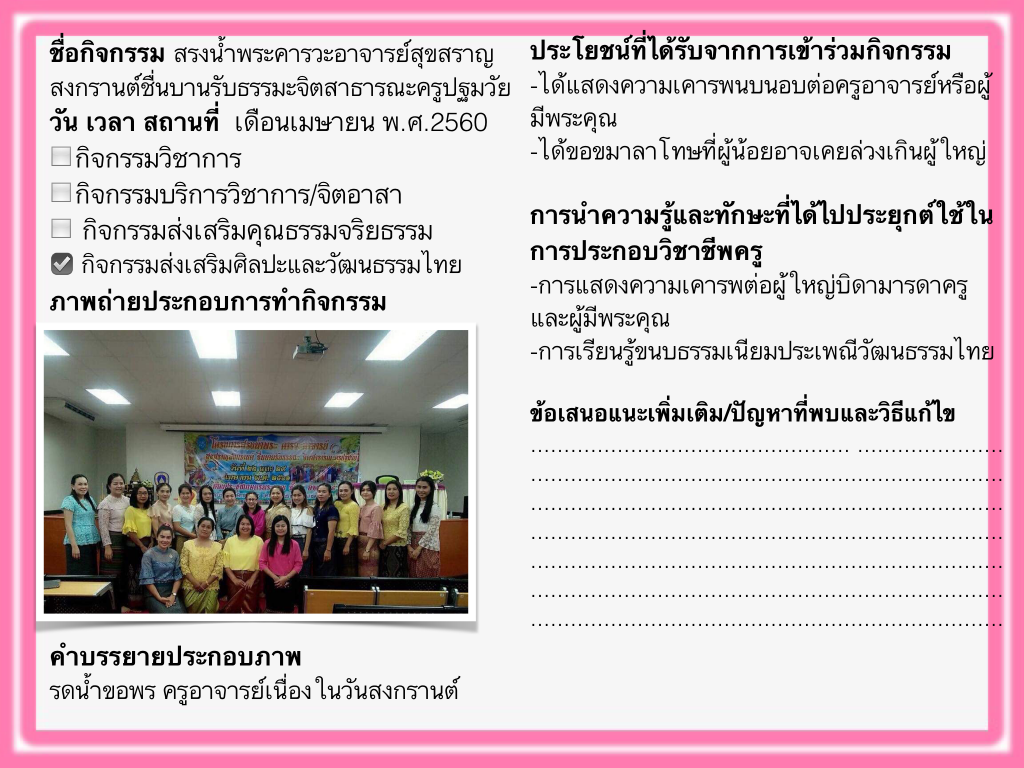 กิจกรรมส่งเสริมศิลปะและวัฒนธรรมไทย(สรงน้ำพระคารวะอาจารย์)