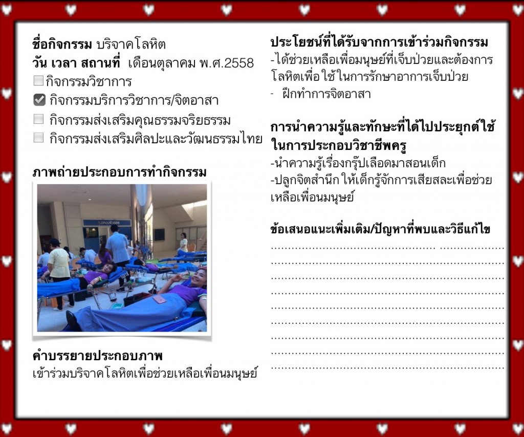 กิจกรรมบริการวิชาการ/จิตอาสา(บริจาคโลหิต)