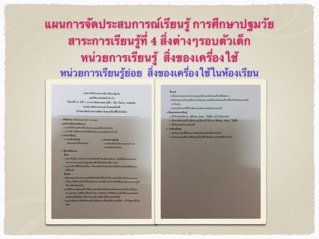 แผนจัดประสบการณ์เรื่อง สิ่งของเครื่องใช้