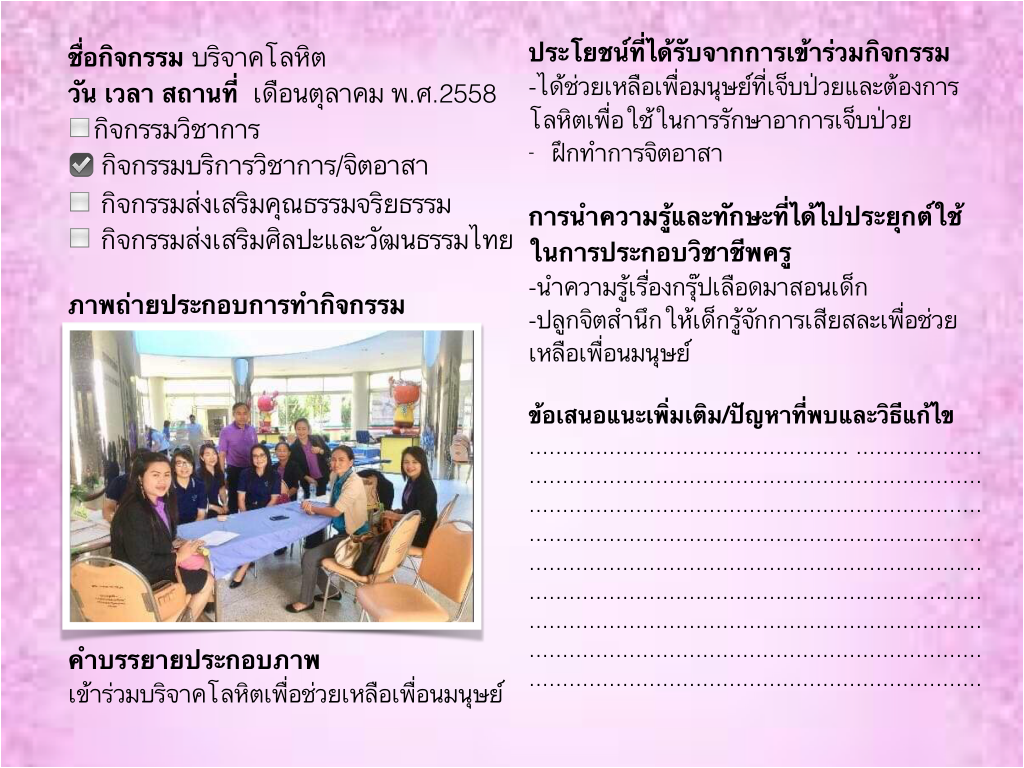 กิจกรรมบริการวิชาการ/จิตอาสา(บริจาคโลหิต)