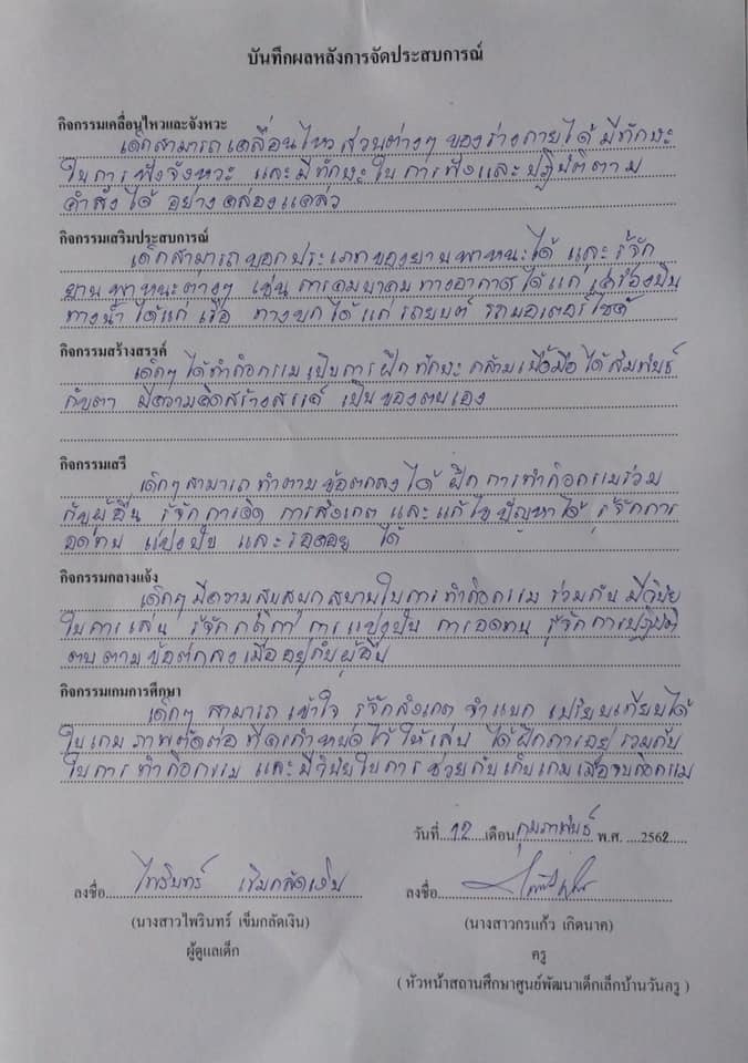 บันทึกหลังการจัดประสบการณ์