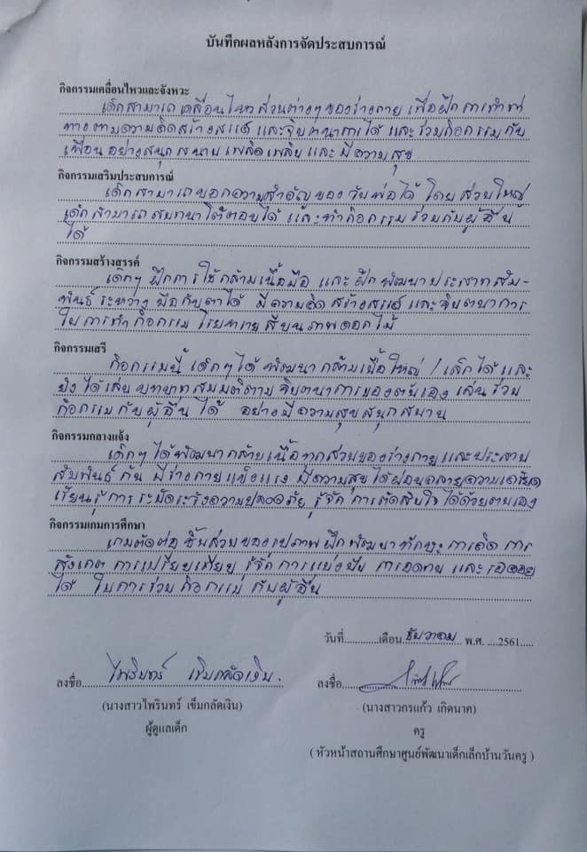 บันทึกหลังการจัดประสบการณ์