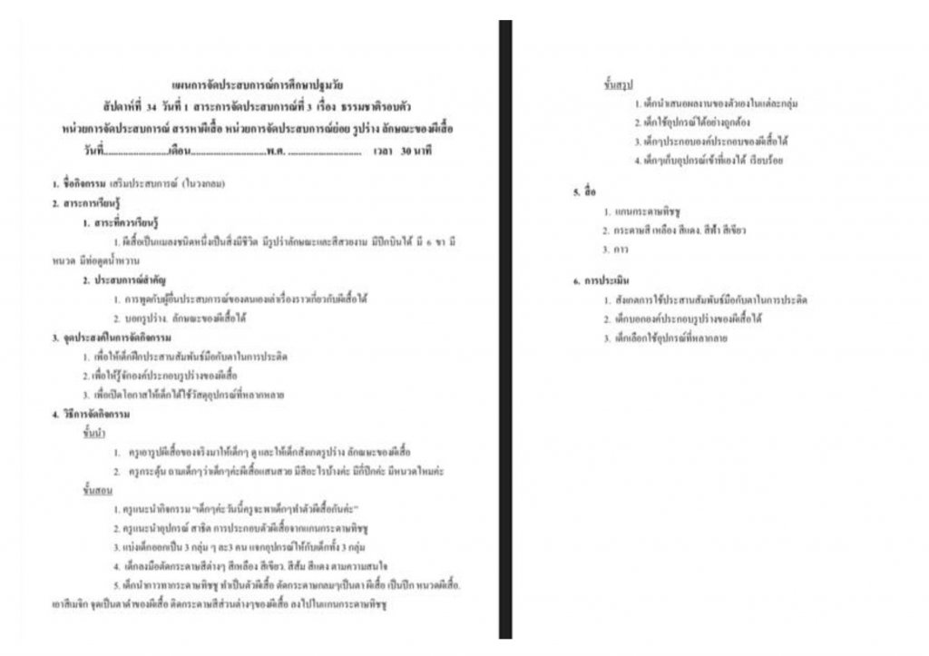 แผนการจัดประสบการณ์ครั้งที่ 1