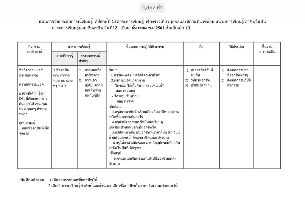 แผนกิจกรรมเสริมประสบการณ์หน่วยอาชีพในฝัน