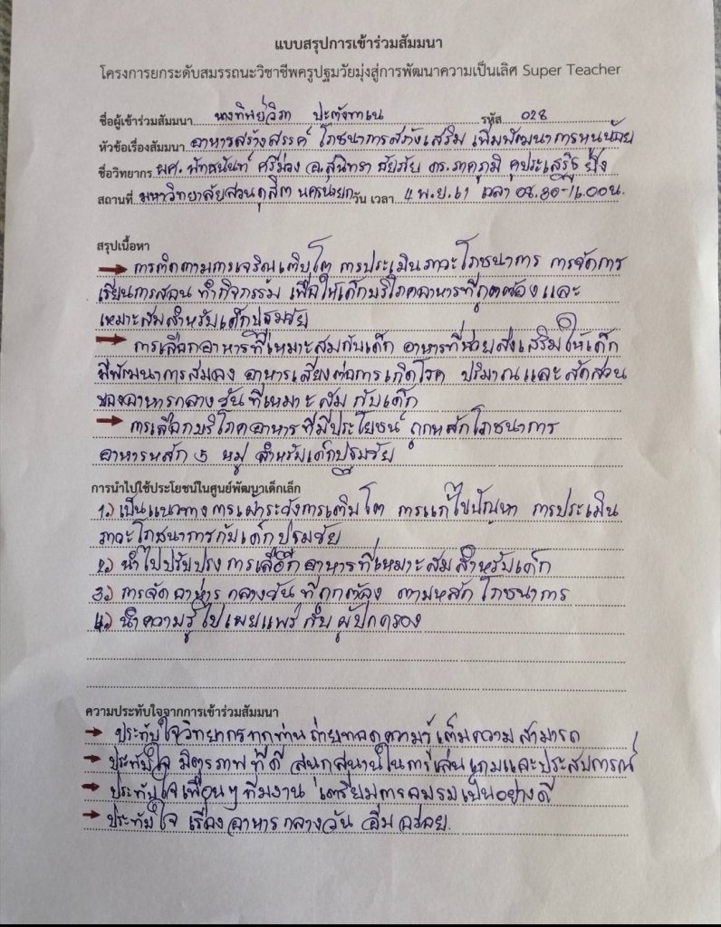 สรุปสัมมนาครั้งที่ 1 อาหารสร้างสรรค์ โภชนาการสร้างเสริม เพิ่มพัฒนาการหนูน้อย