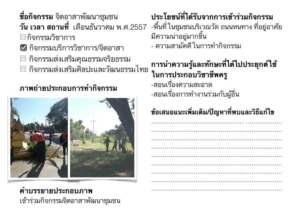 กิจกรรมบริการวิชาการ/จิตอาสา (พัฒนาวัด โรงเรียน ชุมชน)