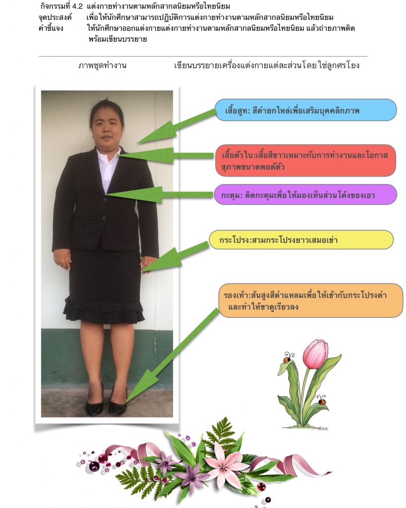 กิจกรรมที่ 4.2 แต่งกายทำงานตามหลักสากลนิยมหรือไทยนิยม