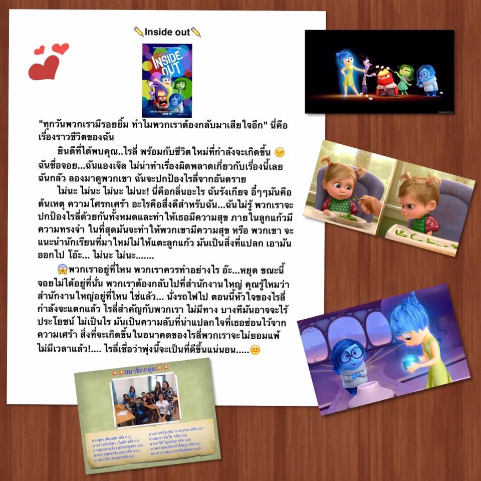 สัปดาห์ที่ 11 สรุปสาระสำคัญ จากการ์ตูน inside out