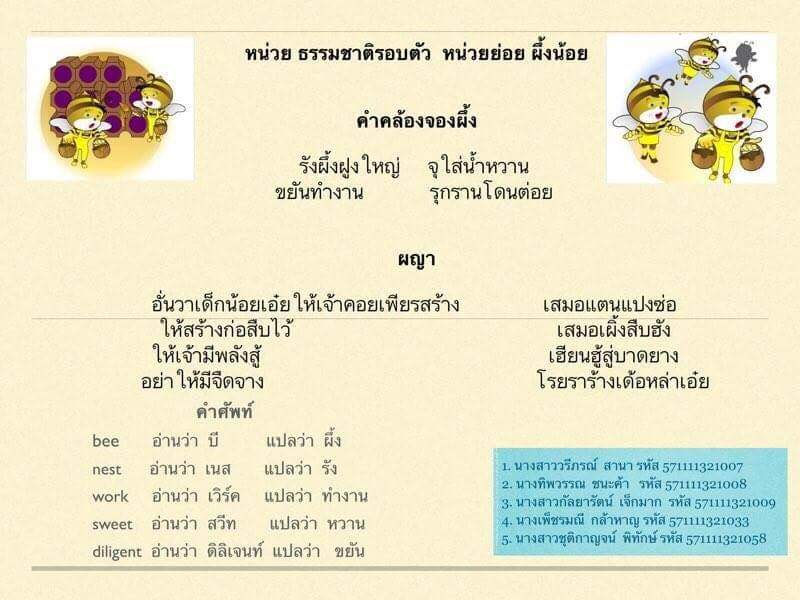เรื่อง ธรรมชาติรอบตัว. หน่วยย่อยผึ้งน้อย