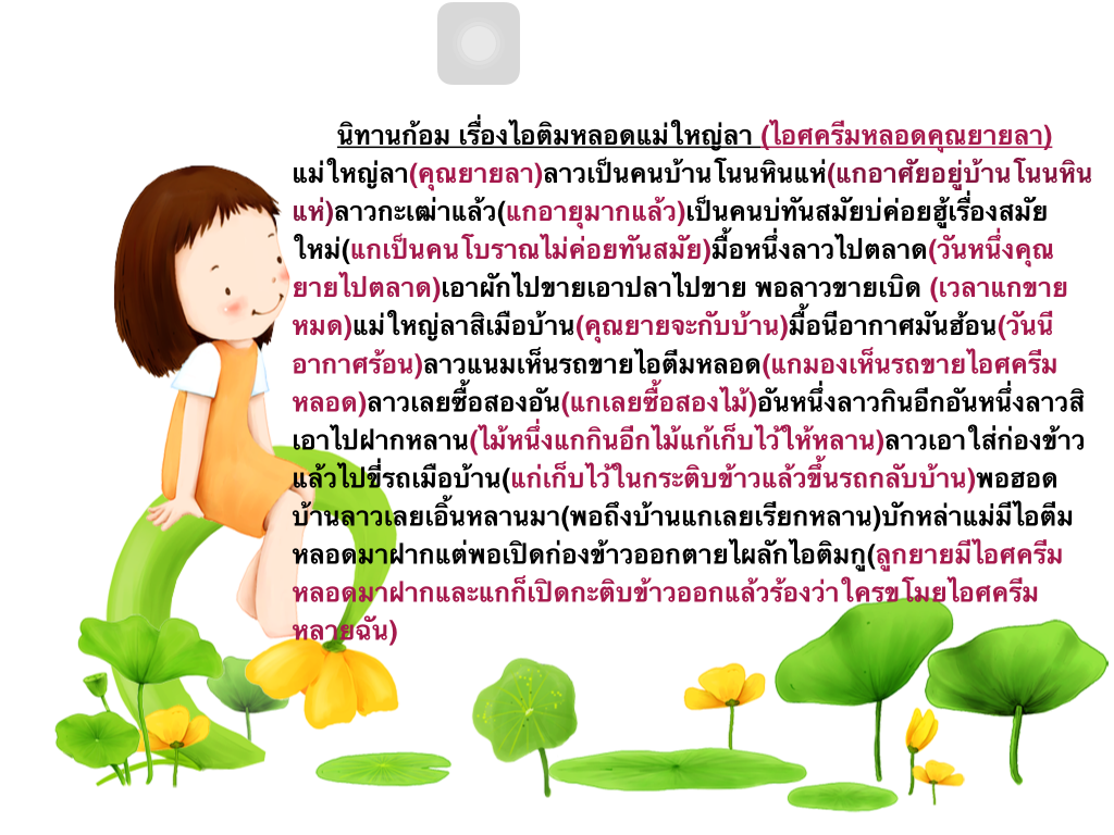 เนื้อเรื่องนิทานก้อม เรื่อง ไอติมหลอดแม่ใหญ่ลา