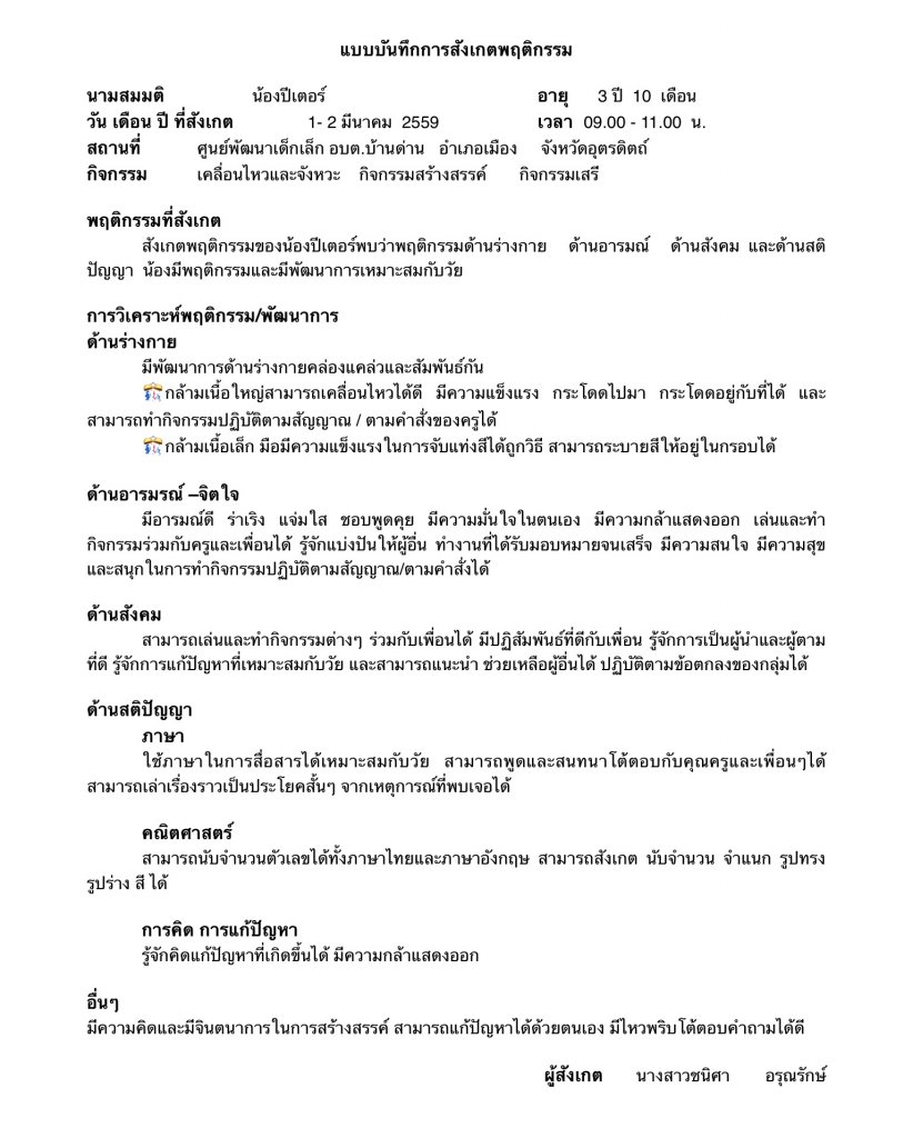แบบบันทึกการสังเกตุพฤติกรรมเด็ก