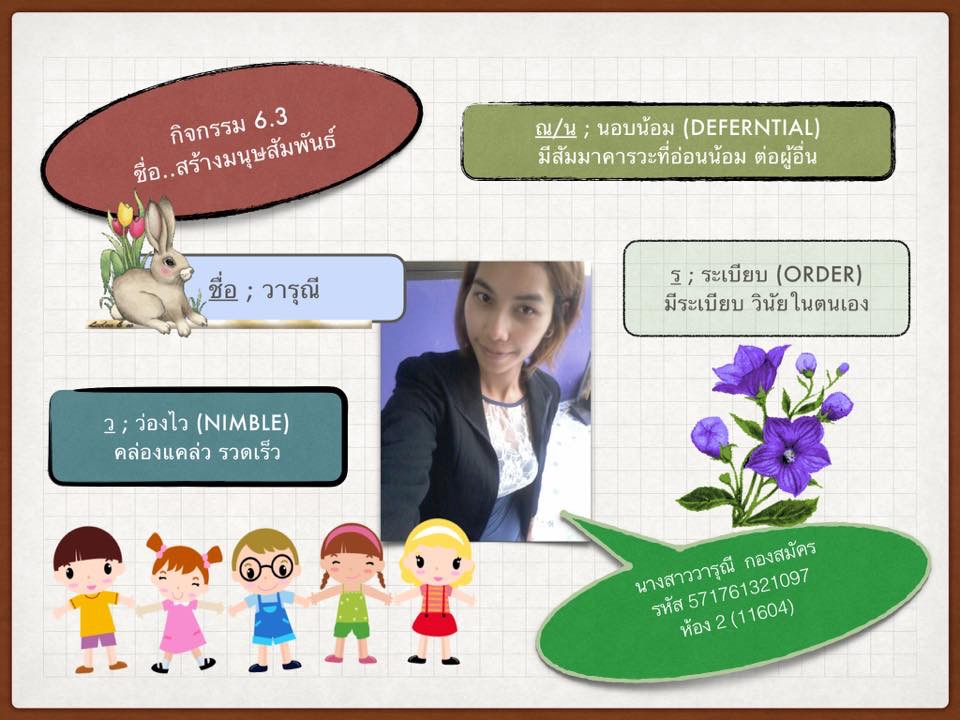 กิจกรรม 6.3 ชื่อ.....สร้างมนุษยสัมพันธ์