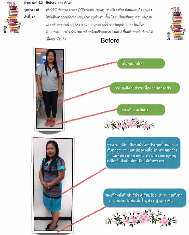 ส่งงาน 4.3 ภาพ before and after ชุดไทย พร้อมระบุชื่อชุดไทย +บอกลักษณะของรูปร่างตนเอง