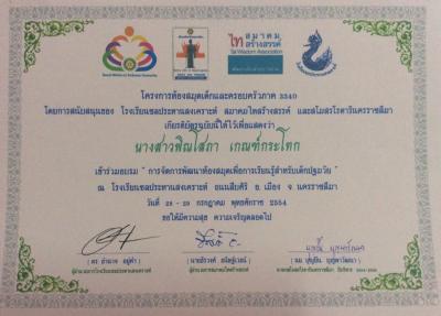 ๒๕๕๘ – ปัจจุบัน ผู้ดูแลเด็ก (ทักษะ)