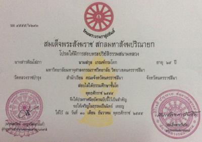 สอบผ่านธรรมศึกษาชั้นตรี ชั้นโท และชั้นเอก