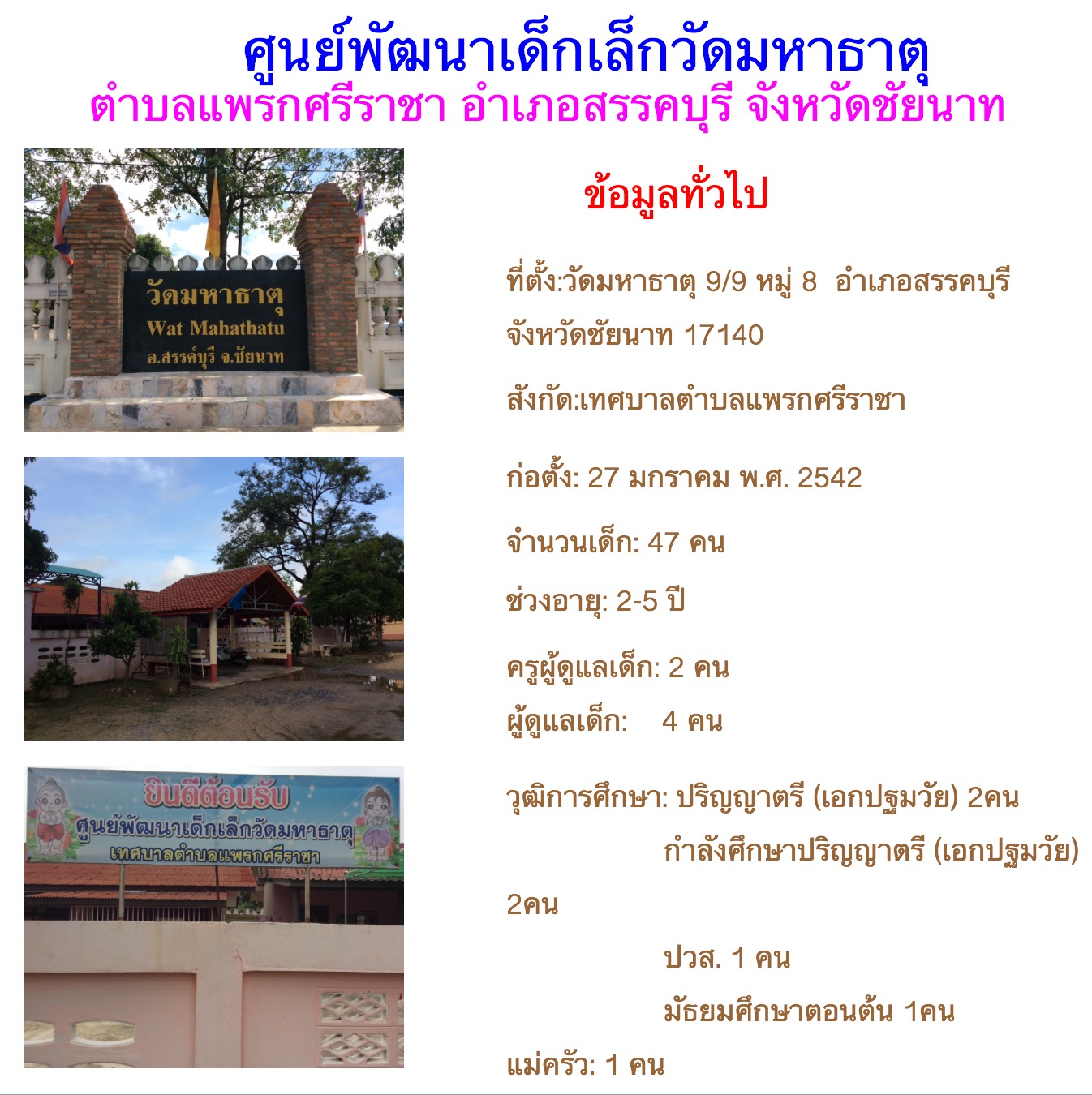 ข้อมูลศูนย์พัฒนาเด็กเล็กวัดมหาธาตุ