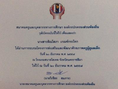 ๒๕๕๘ – ปัจจุบัน ผู้ดูแลเด็ก (ทักษะ)