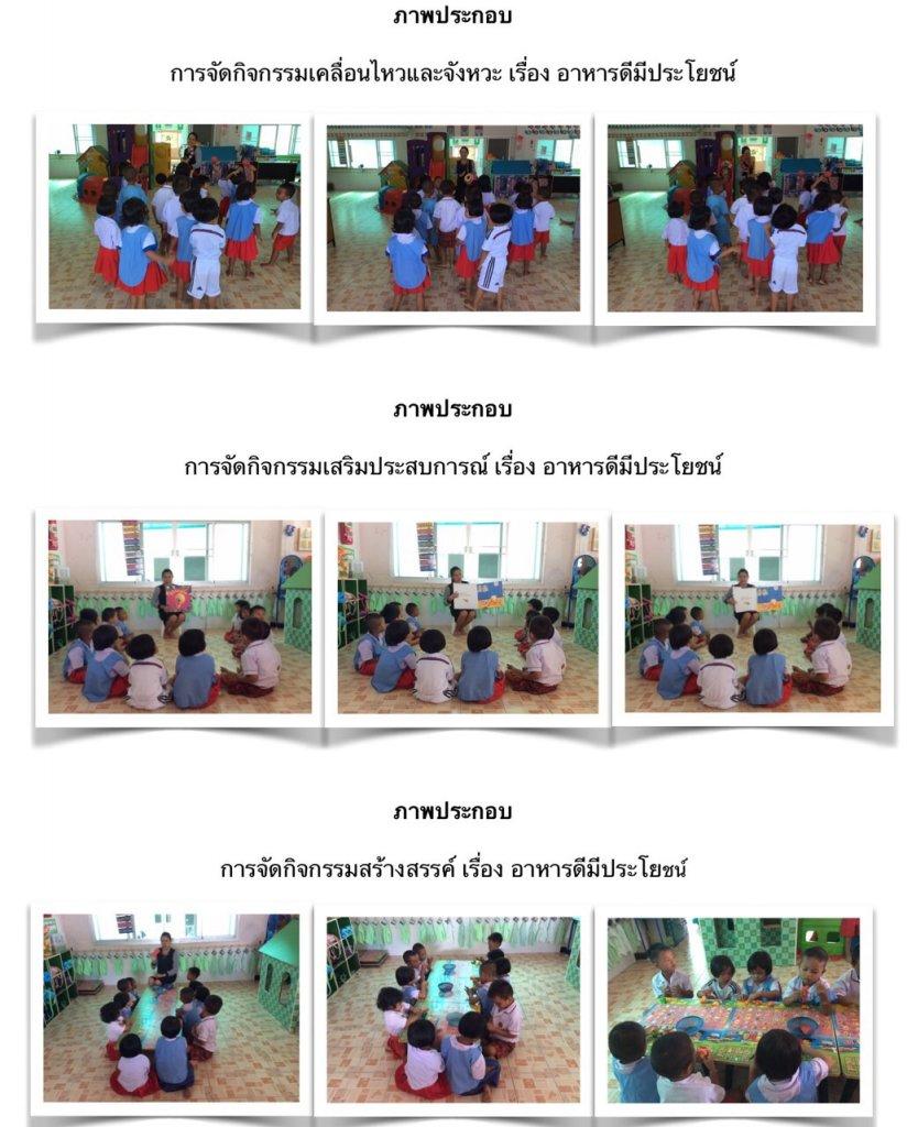 เป็นการจัดกิจกรรมการเรียนรู้เรื่องโภชนาการ สุขอนามัยและความปลอดภัย มีทั้งหมด 5 เรื่อง คือ 1.อาหารดีมีประโยชน์ 2.ความสะอาดของร่างกายและมือ 3.การขับถ่าย 4.ความปลอดภัย 5.การนอนหลับพักผ่อน มีการจัดทำแผนการจัดประสบการณ์การเรียนรู้ทั้ง 5 เรื่อง ไปจัดการเรียนการสอนในศูนย์พัฒนาเด็กเล็ก เพื่อให้เด็กเกิดการเรียนรู้และเข้าใจถึงโภชนาการ การรักษาสุขภาพ และความปลอดภัย ในการเรียนและการใช้ชีวิตประจำวันให้มีความระมัดระวังและรู้จักรักษาความสะอาดของร่างกายกันเอง เพื่อให้เด็กห่างไกลจากโรคต่างๆ